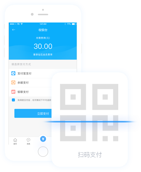 支付解决方案:支持微信支付、支付宝支付、银联、手机支付、